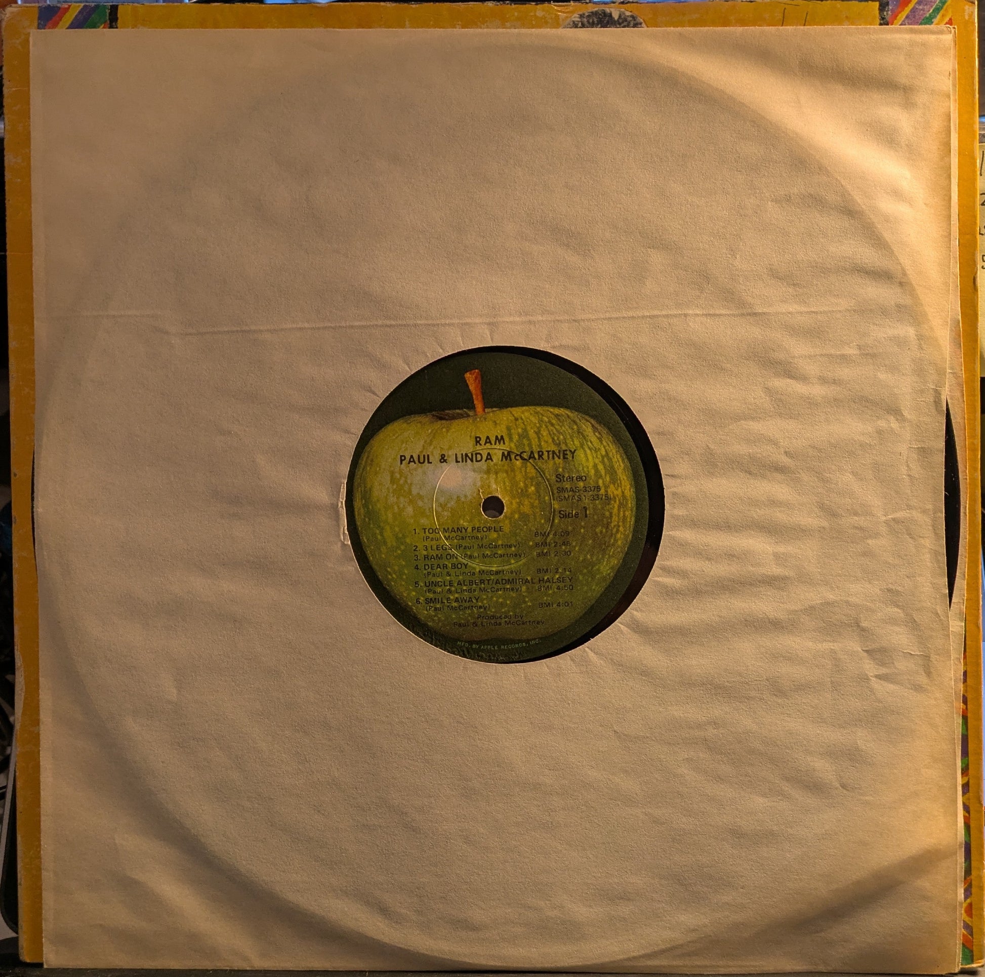 Label variation: unlike Ram, the title appears over the left of the artist, rather than centered, the text is smaller, the rights societies and track times are closer, the songwriters are not separated by lines on Side B, and the production credits are not separated by lines on either label.