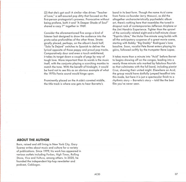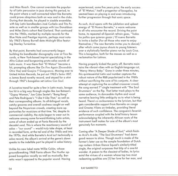 Tracklist: A1. El Nuevo Barretto, A2. Mercy Mercy Baby, A3. Acid, A4. A Deeper Shade Of Soul, B1. The Soul Drummers, B2. Sola Te Dejare, B3. Teacher Of Love, B4. Espiritu Libre