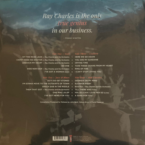 Tracklist: . Soul, A1. Hit The Road Jack, A2. I Don't Need No Doctor, A3. Unchain My Heart, A4. No One, A5. Hide Nor Hair, A6. I've Got A Woman (Live), . Jazz & Blues, B1. Let's Go Get Stoned, B2. I'm Gonna Move To The Outskirts Of Town, B3. Smack Dab In The Middle, B4. Them That Got, B5. One Mint Julep, B6. I've Got News For You, . Country, C1. Here We Go Again, C2. You Are My Sunshine, C3. Crying Time, C4. Take These Chains From My Heart, C5. Ring Of Fire, C6. I Can't Stop Loving You, . Pop Classics, D1. Georgia On My Mind, D2. Eleanor Rigby, D3. Busted, D4. Till There Was You, D5. Hallelujah I Love Her So (Live), D6. A Song For You