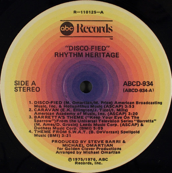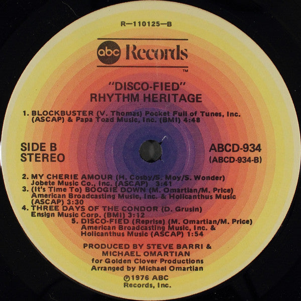Tracklist: A1. Disco-Fied, A2. Caravan, A3. Barretta's Theme (Keep Your Eye On The Sparrow), A4. Theme From S.W.A.T., B1. Blockbuster, B2. My Cherie Amour, B3. (It's Time To) Boogie Down, B4. Three Days Of The Condor, B5. Disco-Fied (Reprise)