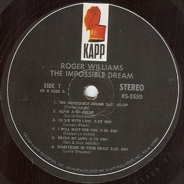 Tracklist: A1. The Impossible Dream, A2. Alfie, A3. To Sir With Love, A4. I Will Wait For You, A5. Never My Love, A6. Something In Your Smile, B1. If You Go, B2. Mas Que Nada, B3. The Spinning Song, B4. Ode To Billie Joe, B5. More Than A Miracle