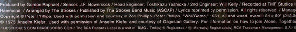 Recorded at TMF Studios in NYC / Mastered[...] at Sterling Sound, NY / Published by The Strokes Band Music (ASCAP) / Managed [...] - Wiz Kid Management