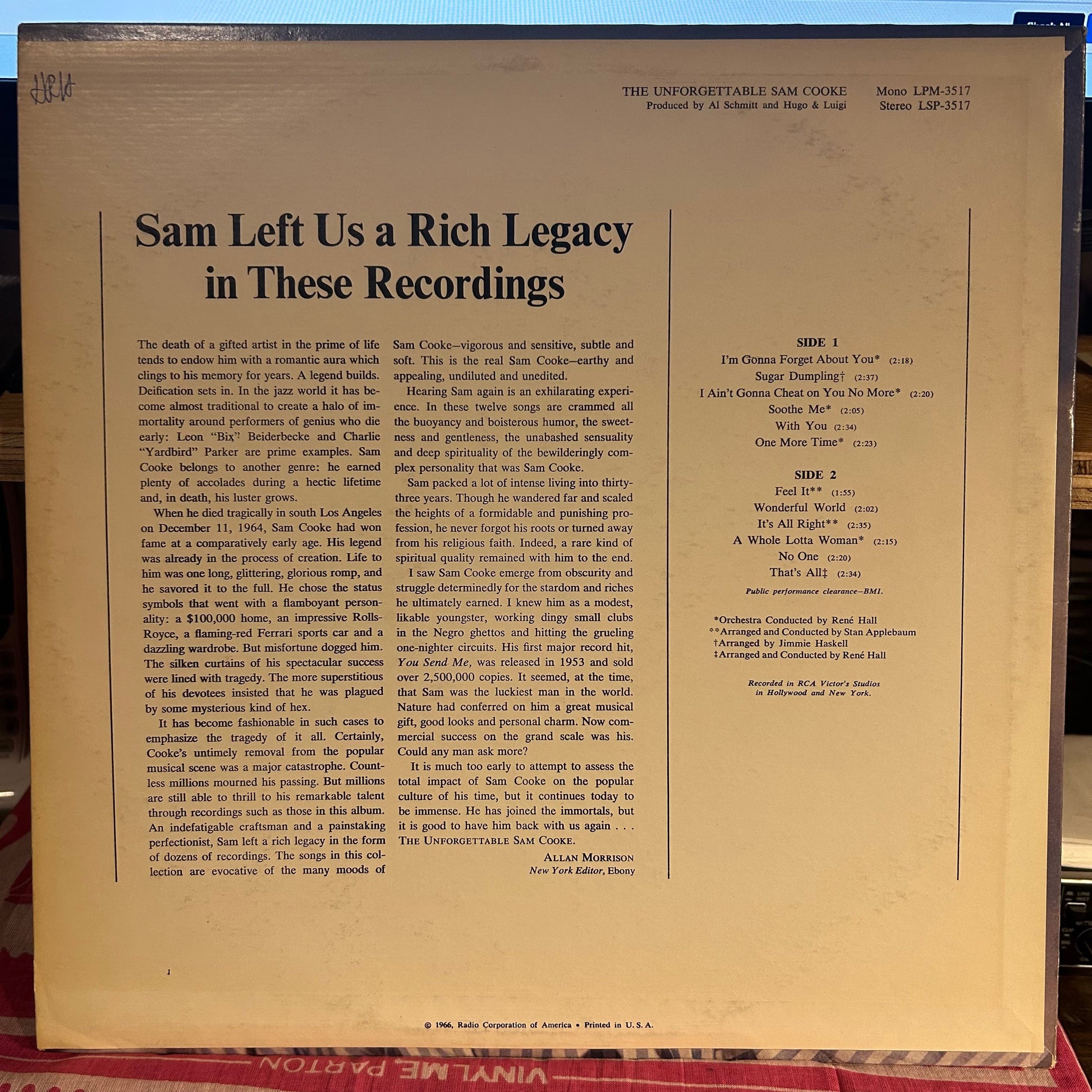 The Unforgettable Sam Cooke | Excellent (EX) Very Good Plus (VG+) Get Cheap Vinyl