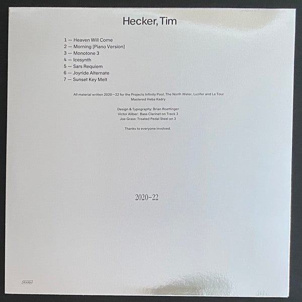 Tracklist: A1. Heaven Will Come, A2. Morning [Piano Version], A3. Monotone 3, B1. Icesynth, B2. Sars Requiem, B3. Joyride Alternate, B4. Sunset Key Melt