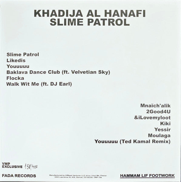 Tracklist: A1. Slime Patrol, A2. Likedis, A3. Youuuuu, A4. Baklava Dance Club (ft. Velvetian Sky), A5. Flocka, A6. Walk Wit Me (ft. DJ Earl), B1. Mnaïch'alik, B2. 2Good4U, B3. &iLovemyloot, B4. Kiki, B5. Yessir, B6. Moulaga, B7. Youuuuu (Ted Kamal Remix)