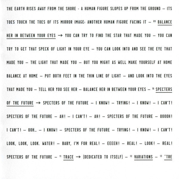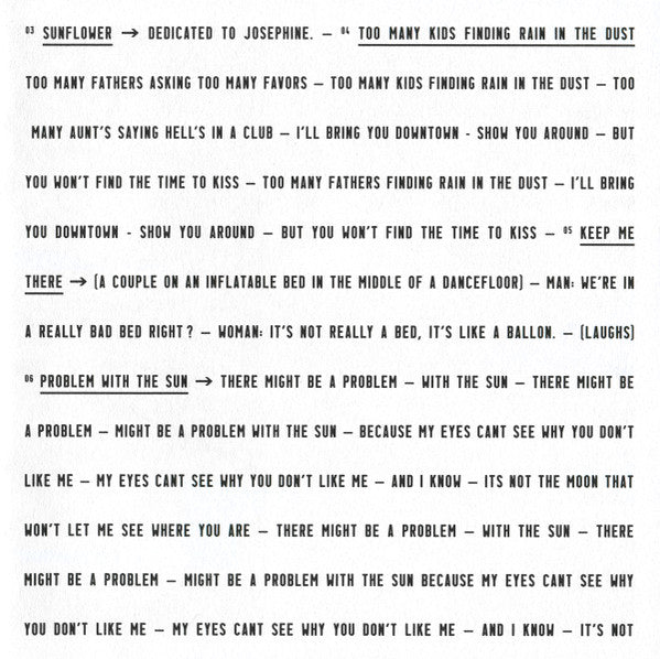 Tracklist: 1. Être, 2. Colomb, 3. Sunflower, 4. Too Many Kids Finding Rain In The Dust, 5. Keep Me There, 6. Problem With The Sun, 7. Space Is Only Noise If You Can See, 8. Almost Fell, 9. Balance Her In Between Your Eyes, 10. Specters Of The Future, 11. Trace, 12. Variations, 13. ^Tre