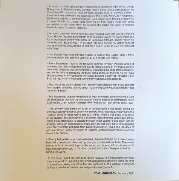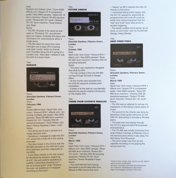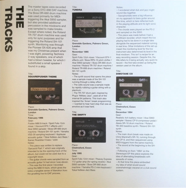 Tracklist: A1. Squarepusher Theme, A2. Tundra, A3. The Swifty, B1. Dimotane Co, B2. Smedleys Melody, B3. Windscale 2, C1. North Circular, C2. Goodnight Jade, C3. Theme From Ernest Borgnine, D1. U.F.O.'s Over Leytonstone, D2. Kodack, D3. Future Gibbon, E1. Theme From Goodbye Renaldo, F1. Deep Fried Pizza