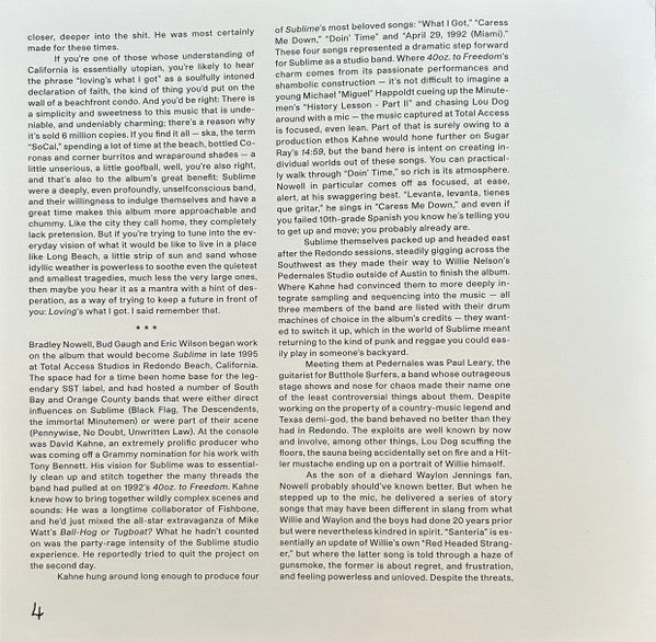 Tracklist: A1. Garden Grove, A2. What I Got, A3. Wrong Way, A4. Same In The End, A5. April 29, 1992 (Miami), B1. Santeria, B2. Seed, B3. Jailhouse, B4. Pawn Shop, C1. Paddle Out, C2. The Ballad Of Johnny Butt, C3. Burritos, C4. Under My Voodoo, C5. Get Ready, D1. Caress Me Down, D2. What I Got (reprise), D3. Doin' Time