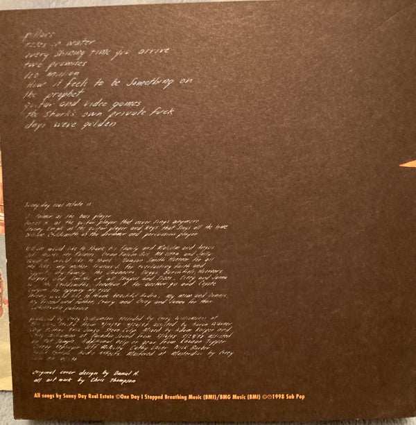 Tracklist: A1. Pillars, A2. Roses In Water, A3. Every Shining Time You Arrive, A4. Two Promises, A5. 100 Million, B1. How It Feels To Be Something On, B2. The Prophet, B3. Guitar And Video Games, B4. The Shark's Own Private Fuck, B5. Days Were Golden