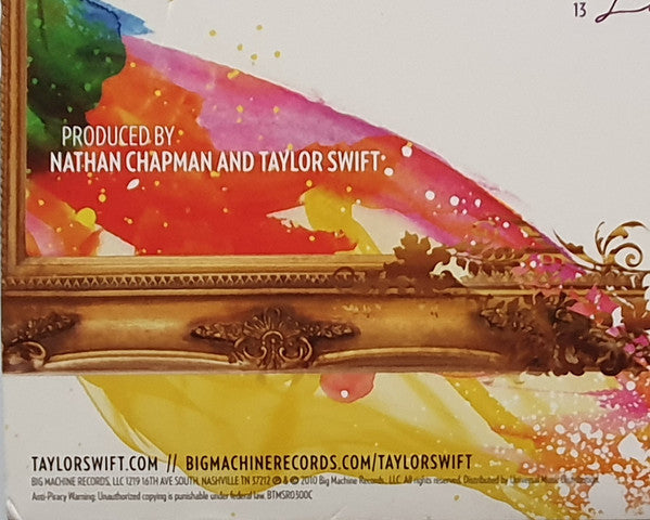 Tracklist: A1. Mine, A2. Sparks Fly, A3. Back To December, A4. Speak Now, B1. Dear John, B2. Mean, B3. The Story Of Us, B4. Never Grow Up, C1. Enchanted, C2. Better Than Revenge, C3. Innocent, D1. Haunted, D2. Last Kiss, D3. Long Live