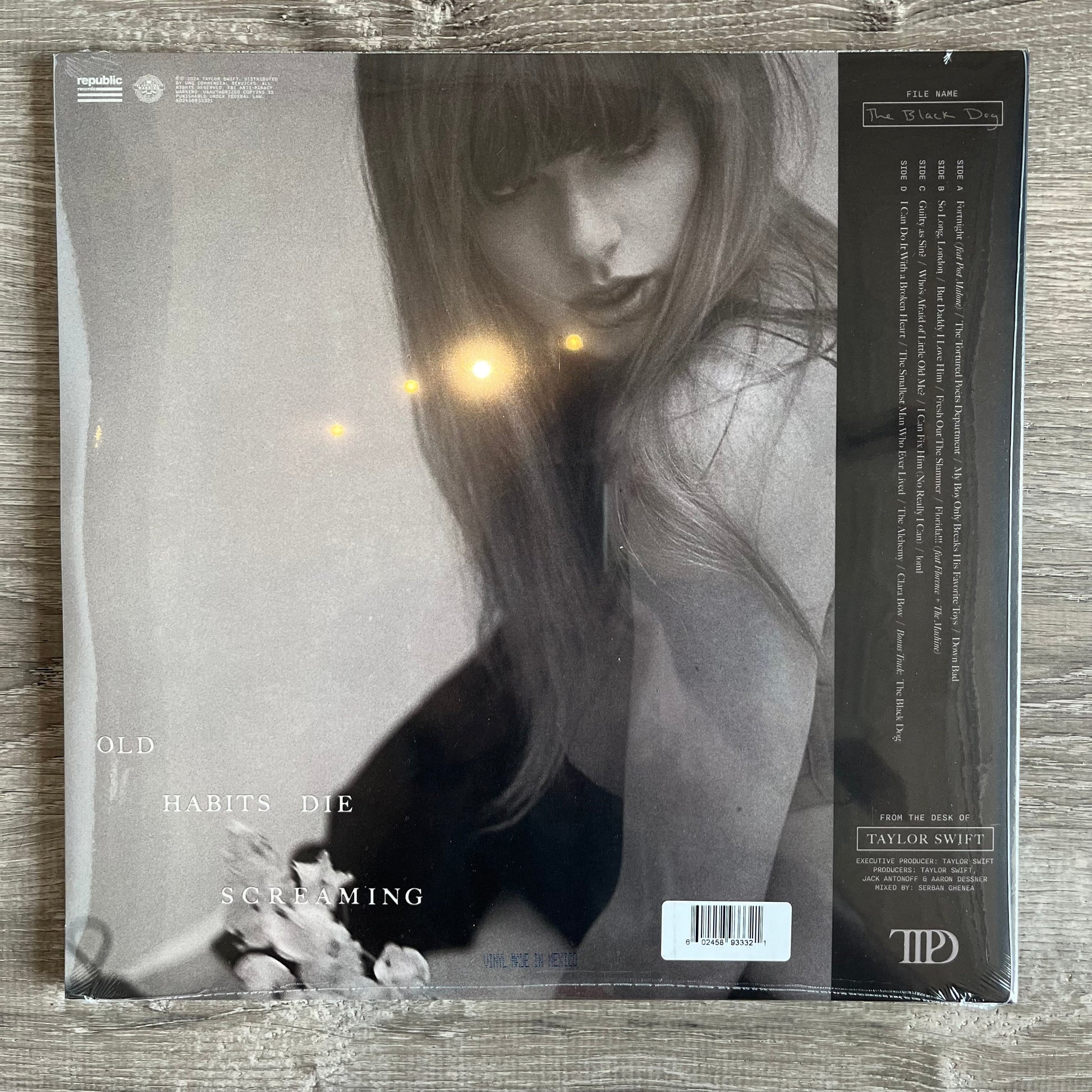 Tracklist: A1. Fortnight, A2. The Tortured Poets Department, A3. My Boy Only Breaks His Favorite Toys, A4. Down Bad, B1. So Long, London, B2. But Daddy I Love Him, B3. Fresh Out The Slammer, B4. Florida!!!, C1. Guilty As Sin?, C2. Who's Afraid Of Little Old Me?, C3. I Can Fix Him (No Really I Can), C4. Loml, D1. I Can Do It With A Broken Heart, D2. The Smallest Man Who Ever Lived, D3. The Alchemy, D4. Clara Bow, . Bonus Track, D5. The Black Dog