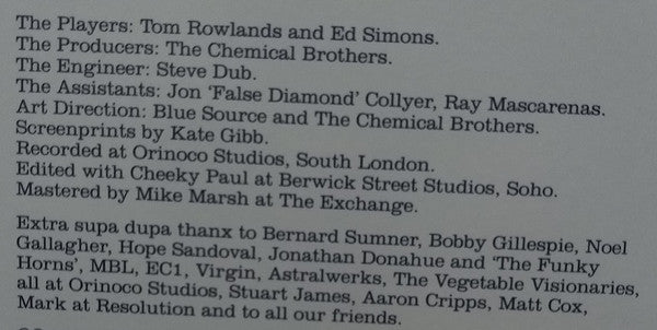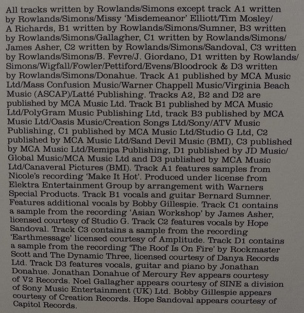Tracklist: A1. Music: Response, A2. Under The Influence, B1. Out Of Control, B2. Orange Wedge, B3. Let Forever Be, C1. The Sunshine Underground, C2. Asleep From Day, C3. Got Glint?, D1. Hey Boy Hey Girl, D2. Surrender, D3. Dream On