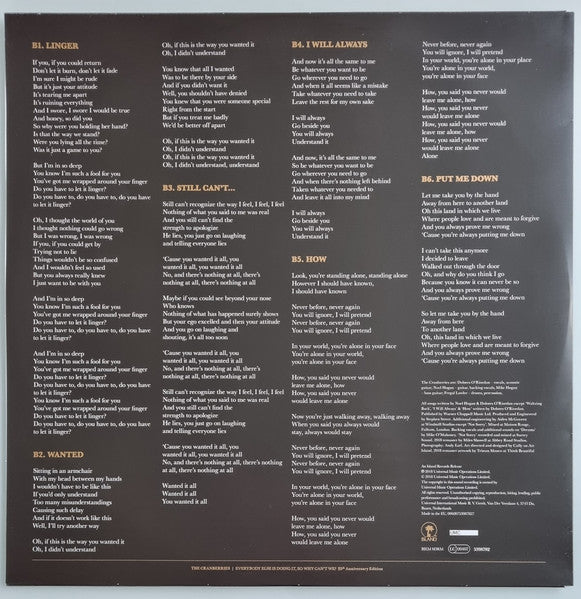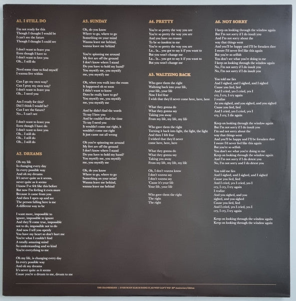 Tracklist: A1. I Still Do, A2. Dreams, A3. Sunday, A4. Pretty, A5. Waltzing Back, A6. Not Sorry, B1. Linger, B2. Wanted, B3. Still Can't ..., B4. I Will Always, B5. How, B6. Put Me Down