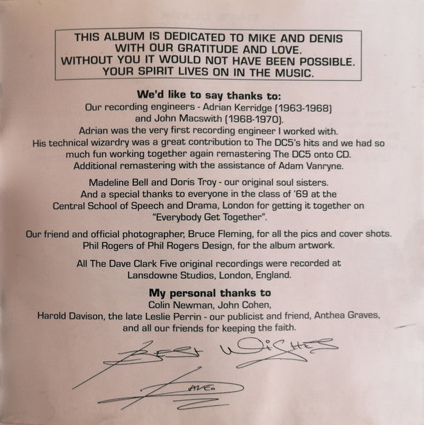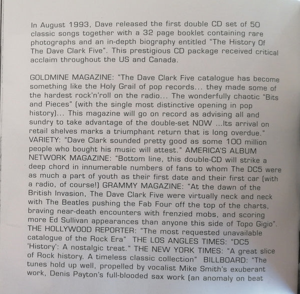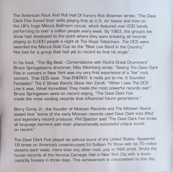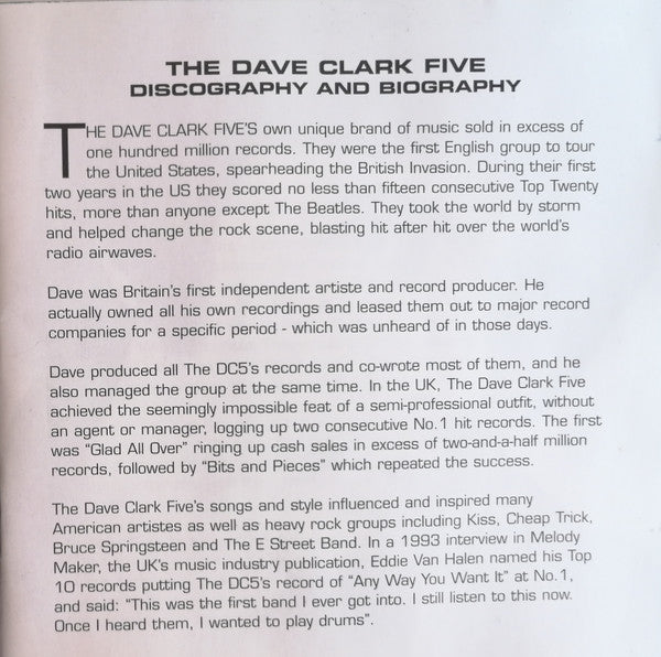 Tracklist: 1. Do You Love Me, 2. Glad All Over, 3. Bits And Pieces, 4. Can't You See That She's Mine, 5. Everybody Knows (I Still Love You), 6. Don't Let Me Down, 7. Any Way You Want It, 8. Wild Weekend, 9. Catch Us If You Can, 10. Because, 11. I Like It Like That, 12. Reelin' And Rockin', 13. Over And Over, 14. Come Home, 15. You Got What It Takes, 16. Try Too Hard, 17. Everybody Knows, 18. I'll Be Yours My Love, 19. Nineteen Days, 20. Look Before You Leap, 21. 'Til The Right One Comes Along, 22. All Night Long, 23. Good Old Rock 'N' Roll (Medley), 23a. Good Old Rock 'N' Roll, 23b. Sweet Little Sixteen, 23c. Long Tall Sally, 23d. Chantilly Lace, 23e. Whole Lotta Shakin' Goin' On, 23f. Blue Suede Shoes, 23g. Good Old Rock 'N' Roll, 24. Sha-Na-Na Hey Hey Kiss Him Goodbye, 25. Here Comes Summer, 26. Put A Little Love In Your Heart, 27. Everybody Get Together, 28. Universal Love (New Unreleased Bonus Track)
