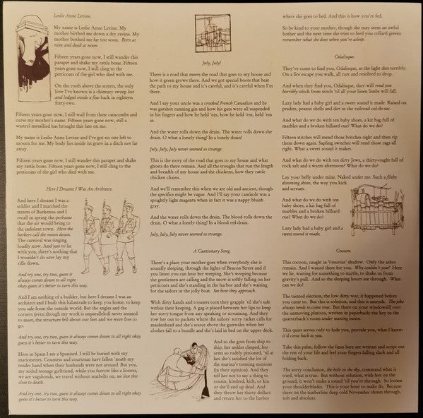 Tracklist: A1. Leslie Anne Levine, A2. Here I Dreamt I Was An Architect, A3. July, July!, A4. A Cautionary Song, A5. Odalisque, A6. Cocoon, B1. Grace Cathedral Hill, B2. The Legionnaire's Lament, B3. Clementine, B4. California One / Youth And Beauty Brigade