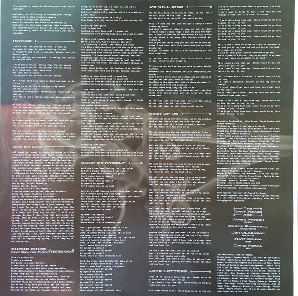 Tracklist: A1. Arrival, A2. Cabin By The Sea, A3. Disguise, A4. Spread Too Thin, A5. Your Love, A6. Mongo Push, A7. Dance All Night, A8. Hipster, B1. Notice, B2. Day By Day, B3. Smoke Rings, B4. Burn By Myself, B5. We Will Rise, B6. Best Of Us, B7. Love Letters, B8. Farewell