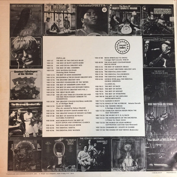 Ⓒ 1974 Vanguard Recording Society, Inc., 71 West 23rd Street, New York, N.Y. 10010 Printed in U.S.A.
