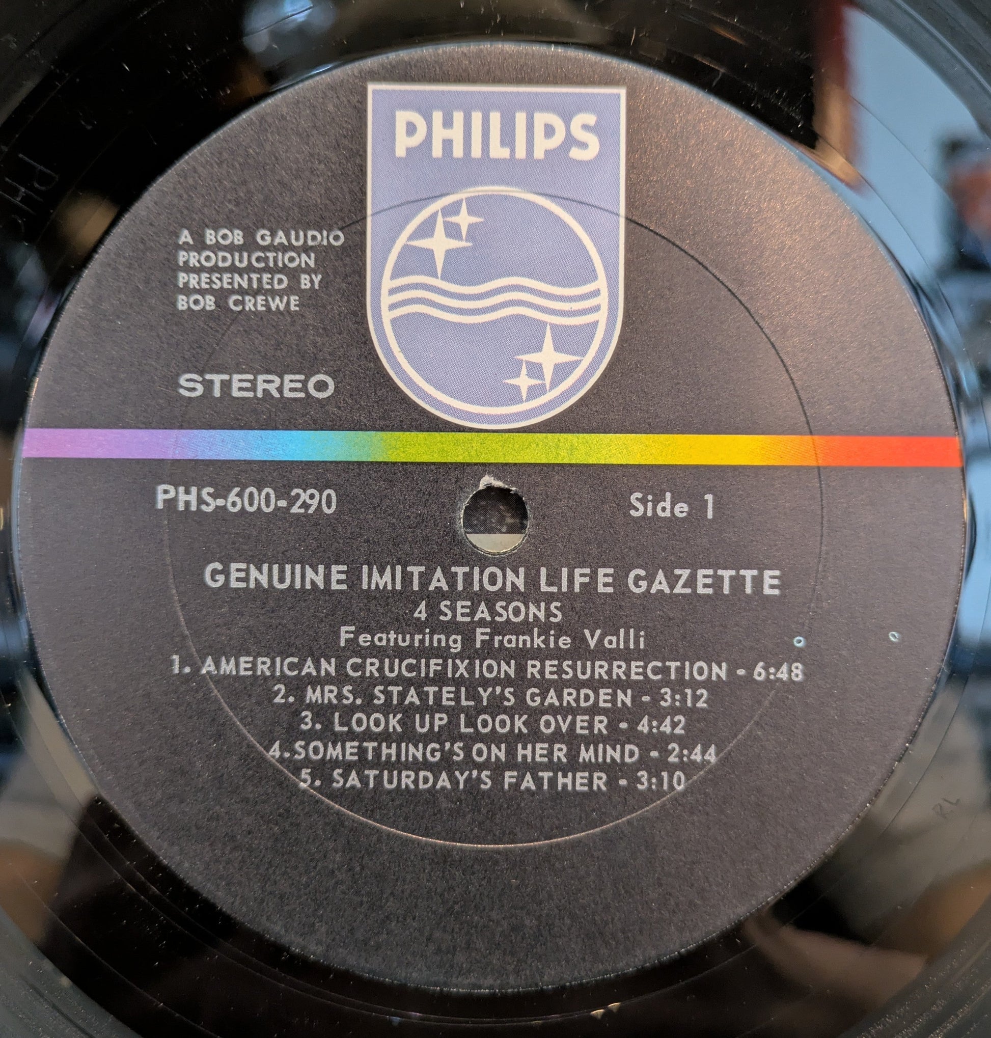 On the label the title is abbreviated to ''Genuine Imitation Life Gazette'' and the artist to ''4 Seasons''
