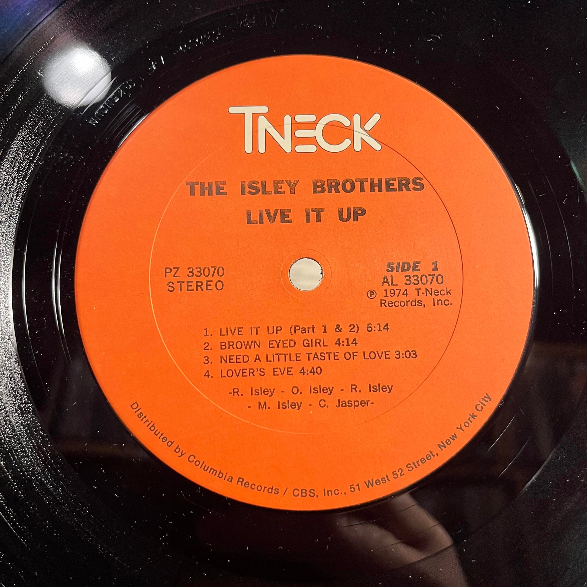Almost exactly the same as The Isley Brothers - Live It Up except for label rim text which names Columbia as the distributor, not CBS.