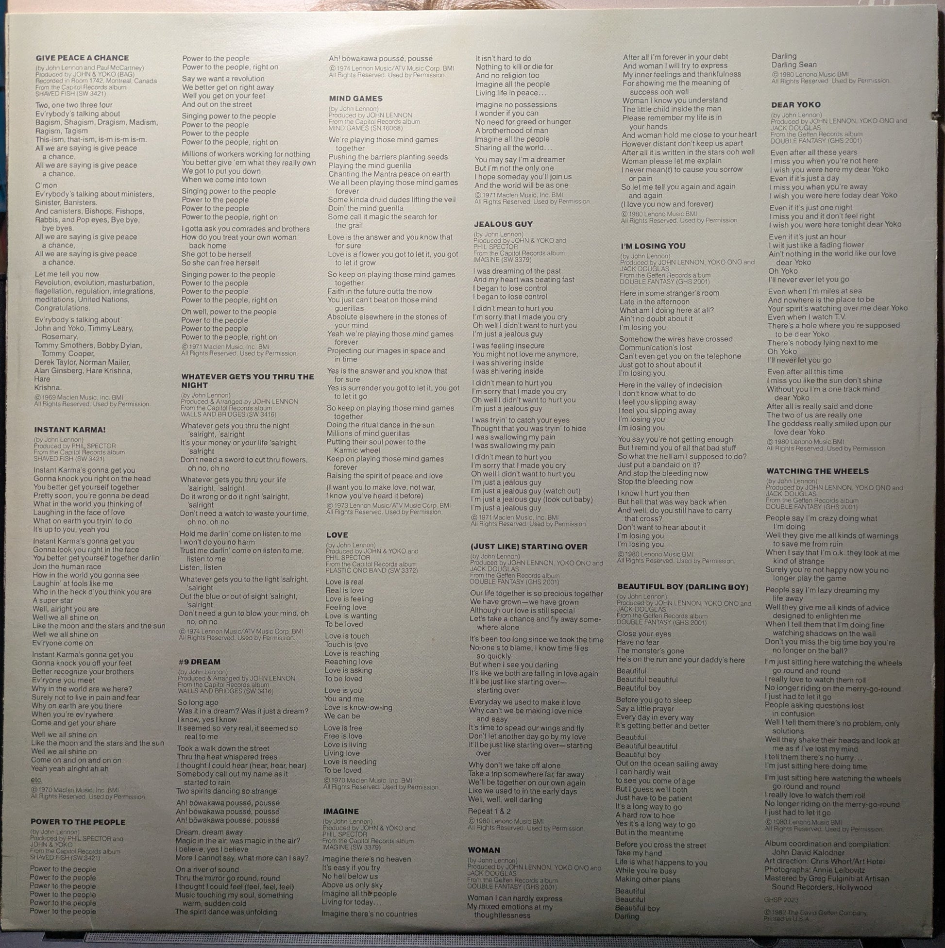 B3 to B8: From the Geffen Records album Double Fantasy (GHS 2001)