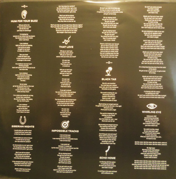 Tracklist: A1. Doing It To Death, A2. Heart Of A Dog, A3. Hard Habit To Break, B1. Bitter Fruit, B2. Days Of Why And How, B3. Let It Drop, C1. Hum For Your Buzz, C2. Siberian Nights, C3. That Love, C4. Impossible Tracks, D1. Black Tar, D2. Echo Home, D3. Whirling Eye