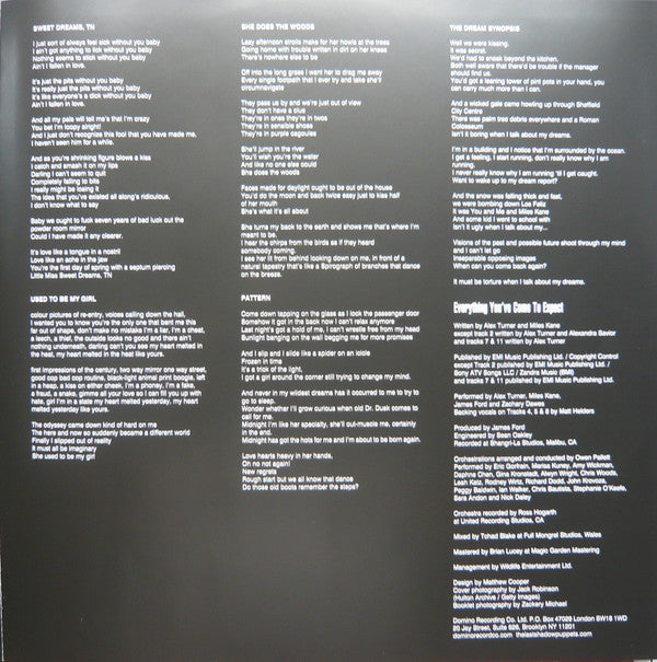 Tracklist: A1. Aviation, A2. Miracle Aligner, A3. Dracula Teeth, A4. Everything You've Come To Expect, A5. The Element Of Surprise, A6. Bad Habits, B1. Sweet Dreams, TN, B2. Used To Be My Girl, B3. She Does Woods, B4. Pattern, B5. The Dream Synopsis