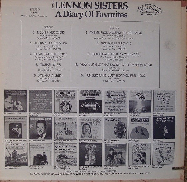 Tracklist: A1. Moon River, A2. Autumn Leaves, A3. Beautiful Ohio, A4. Michael, A5. Ave Maria, B1. Theme From A Summer Place, B2. Greensleeves, B3. Kisses Sweeter Than Wine, B4. (How Much Is) That Doggie In The Window, B5. I Understand (Just How You Feel)