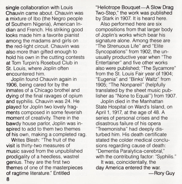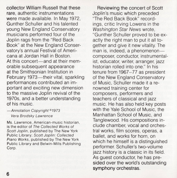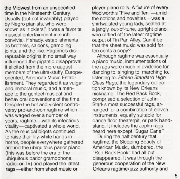- Scott Joplin - The New England Conservatory Ragtime Ensemble Conducted By Gunther Schuller - The Red Back Book except "Sun Flower Slow Drag (Piano Solo Version)"