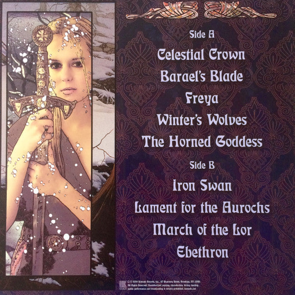 Tracklist: A1. Celestial Crown, A2. Barael's Blade, A3. Freya, A4. Winter's Wolves, A5. The Horned Goddess, B1. Iron Swan, B2. Lament For The Aurochs, B3. March Of The Lor, B4. Ebethron