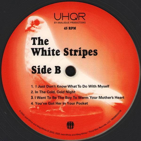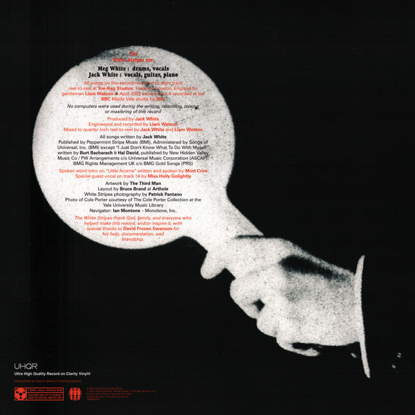 Tracklist: A1. Seven Nation Army, A2. Black Math, A3. There's No Home For You Here, B1. I Just Don't Know What To Do With Myself, B2. In The Cold, Cold Night, B3. I Want To Be The Boy To Warm Your Mother's Heart, B4. You've Got Her In Your Pocket, C1. Ball And Biscuit, C2. The Hardest Button To Button, C3. Little Acorns, D1. Hypnotize, D2. The Air Near My Fingers, D3. Girl, You Have No Faith In Medicine, D4. It's True That We Love One Another