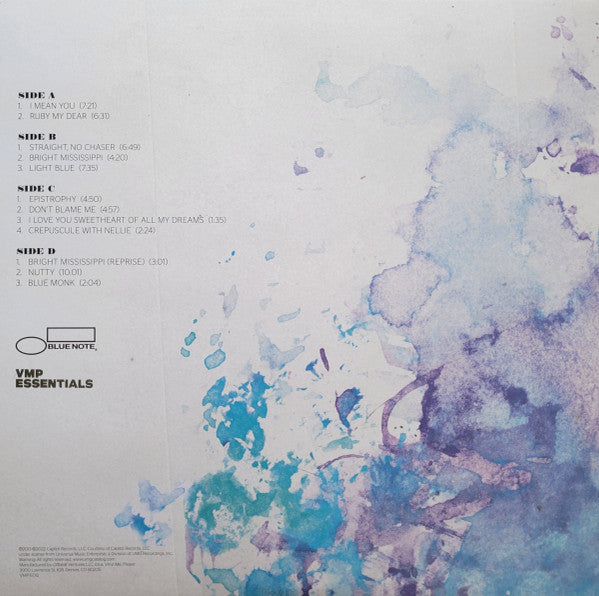 Tracklist: A1. I Mean You, A2. Ruby My Dear, B1. Straight, No Chaser, B2. Bright Mississippi, B3. Light Blue, C1. Epistrophy, C2. Don't Blame Me, C3. I Love You Sweetheart Of All My Dreams, C4. Crepuscule With Nellie, D1. Bright Mississippi (Reprise), D2. Nutty, D3. Blue Monk