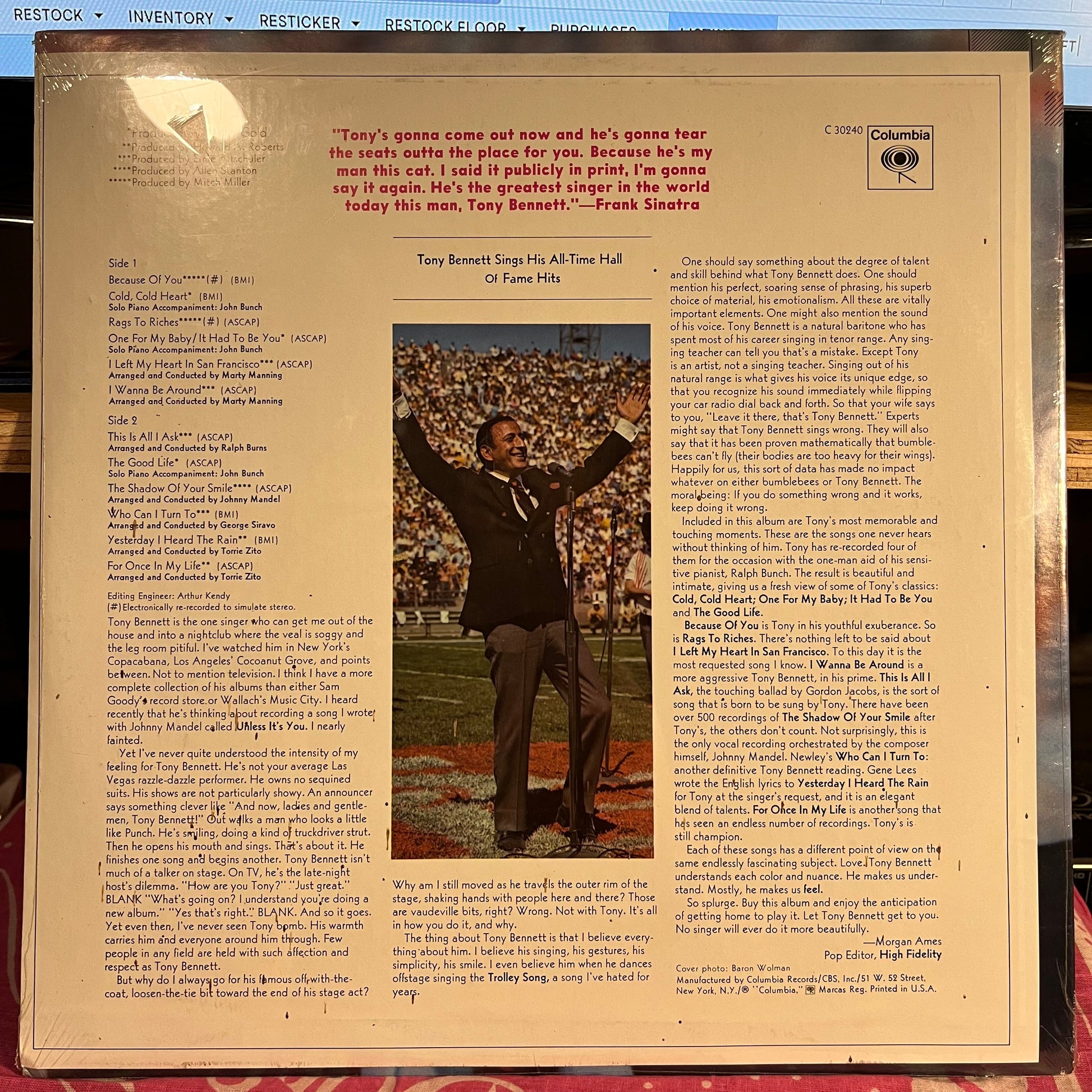Tracklist: A1. Because Of You, A2. Cold, Cold Heart, A3. Rags To Riches, A4. One For My Baby / It Had To Be You, A5. I Left My Heart In San Francisco, A6. I Wanna Be Around, B1. This Is All I Ask, B2. The Good Life, B3. The Shadow Of Your Smile, B4. Who Can I Turn To (When Nobody Needs Me), B5. Yesterday I Heard The Rain (Esta Tarde Vi Llover), B6. For Once In My Life