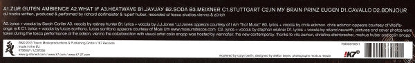 Tracklist: LP-A1. Zur Guten Ambience, LP-A2. What If, LP-A3. Heatwave, LP-B1. Jayjay, LP-B2. Soda, LP-B3. Meixner, LP-C1. Stuttgart, LP-C2. In My Brain Prinz Eugen, LP-D1. Cavallo, LP-D2. Bonjour, CD-1. Zur Guten Ambience, CD-2. What If, CD-3. Heatwave, CD-4. Jayjay, CD-5. Soda, CD-6. Meixner, CD-7. Stuttgart, CD-8. In My Brain Prinz Eugen, CD-9. Cavallo, CD-10. Bonjour