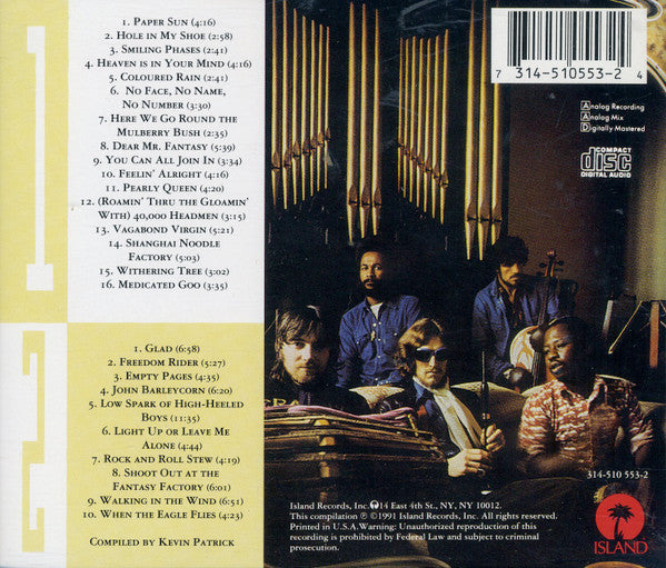 Tracklist: 1-1. Paper Sun, 1-2. Hole In My Shoe, 1-3. Smiling Phases, 1-4. Heaven Is In Your Mind, 1-5. Coloured Rain, 1-6. No Face, No Name, No Number, 1-7. Here We Go Round The Mulberry Bush, 1-8. Dear Mr. Fantasy, 1-9. You Can All Join In, 1-10. Feelin' Alright, 1-11. Pearly Queen, 1-12. (Roamin' Thru The Gloamin' With) 40,000 Headmen, 1-13. Vagabond Virgin, 1-14. Shanghai Noodle Factory, 1-15. Withering Tree, 1-16. Medicated Goo, 2-1. Glad, 2-2. Freedom Rider, 2-3. Empty Pages, 2-4. John Barleycorn, 2-5. Low Spark Of High-Heeled Boys, 2-6. Light Up Or Leave Me Alone, 2-7. Rock And Roll Stew, 2-8. Shoot Out At The Fantasy Factory, 2-9. Walking In The Wind, 2-10. When The Eagle Flies