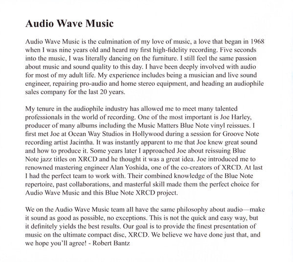 Liner Notes [Audio Wave Music], Executive-Producer [XRCD Reissue] – Robert Bantz