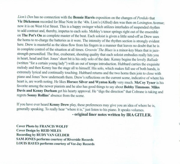 Sam Jones performs by courtesy of Riverside Records, Louis Hayes by courtesy of Vee-Jay Records.