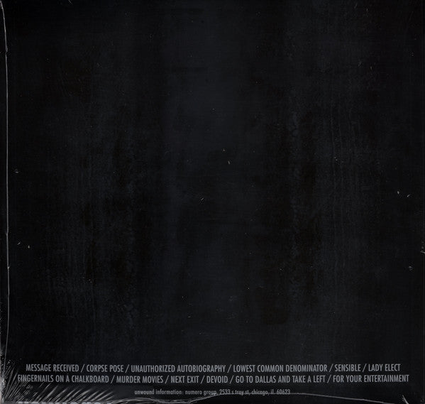Tracklist: A1. Message Received, A2. Corpse Pose, A3. Unauthorized Autobiography, A4. Lowest Common Denominator, A5. Sensible, A6. Lady Elect, B1. Fingernails On A Chalkboard, B2. Murder Movies, B3. Next Exit, B4. Devoid, B5. Go To Dallas And Take A Left, B6. For Your Entertainment