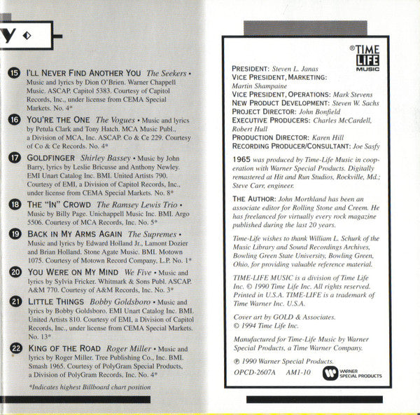 Tracklist: 1. I Got You Babe, 2. Downtown, 3. What The World Needs Now Is Love, 4. My Girl, 5. I Go To Pieces, 6. Game Of Love, 7. What's New Pussycat?, 8. Do You Believe In Magic, 9. California Girls, 10. Make Me Your Baby, 11. You've Lost That Lovin' Feelin', 12. The Tracks Of My Tears, 13. This Diamond Ring, 14. You've Got Your Troubles, 15. I'll Never Find Another You, 16. You're The One, 17. Goldfinger, 18. The "In" Crowd, 19. Back In My Arms Again, 20. You Were On My Mind, 21. Little Things, 22. King Of The Road