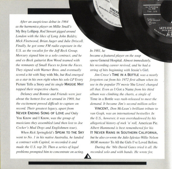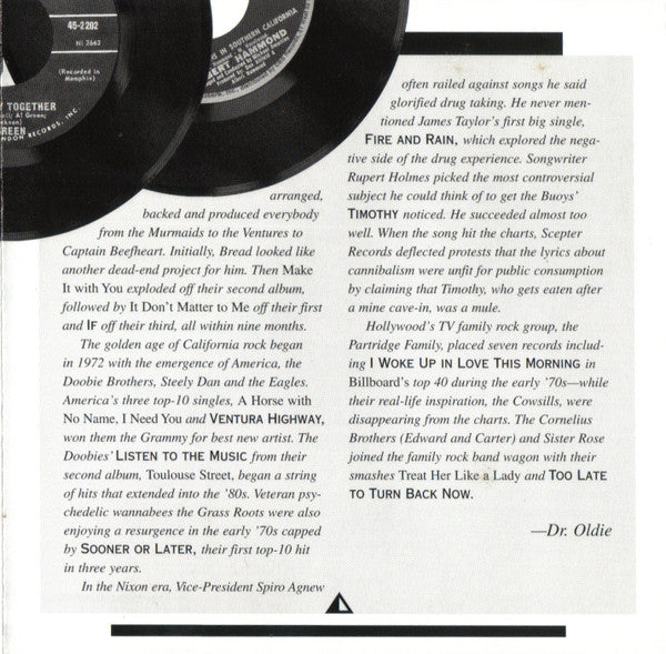 Tracklist: 1. Maggie May, 2. Listen To The Music, 3. Time In A Bottle, 4. Ain't No Sunshine, 5. I Woke Up In Love This Morning, 6. The Tears Of A Clown, 7. Give Me Just A Little More Time, 8. Love Train, 9. It Never Rains In Southern California, 10. Never Ending Song Of Love, 11. If You Don't Know Me By Know, 12. Sooner Or Later, 13. Let's Stay Together, 14. If, 15. Fire And Rain, 16. Love Or Let Me Be Lonely, 17. Ventura Highway, 18. Timothy, 19. Too Late To Turn Back Now, 20. The Love You Save, 21. Speak To The Sky, 22. Vincent