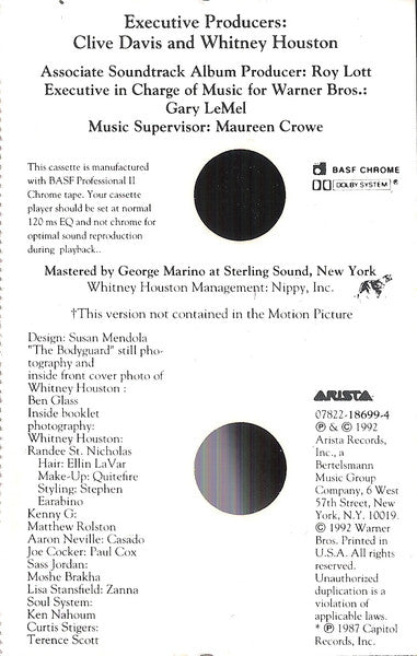 The Bodyguard (Original Soundtrack Album) *CASSETTE* | Near Mint (NM) Near Mint (NM) Get Cheap Vinyl