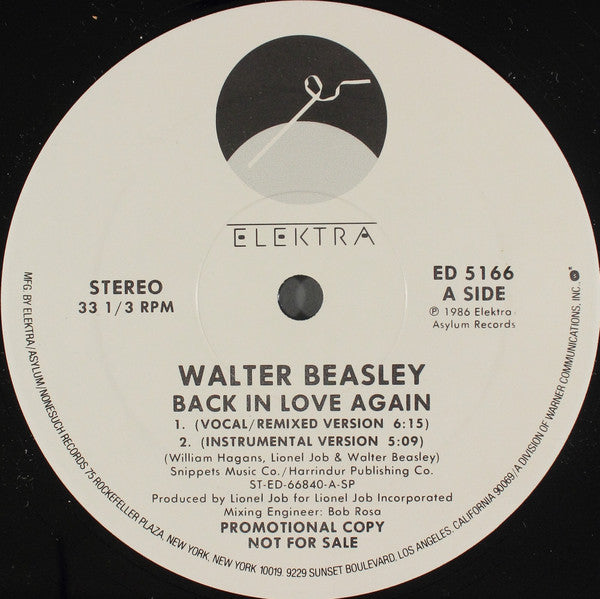 Tracklist: A1. Back In Love Again (Vocal / Remixed Version), A2. Back In Love Again (Instrumental Version), B1. Back In Love Again (Vocal LP Version), B2. Back In Love Again (Vocal / Edited Version)