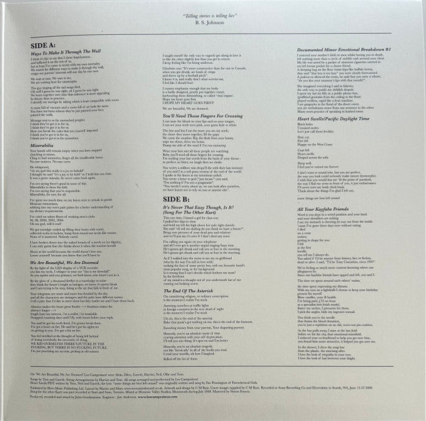 Tracklist: A1. Ways To Make It Through The Wall, A2. Miserabilia, A3. We Are Beautiful, We Are Doomed, A4. Between An Erupting Earth And An Exploding Sky, A5. You'll Need Those Fingers For Crossing, B1. It's Never That Easy Though, Is It? (Song For The Other Kurt), B2. The End Of The Asterisk, B3. Documented Minor Emotional Breakdown #1, B4. Heart Swells / Pacific Daylight Time, B5. All Your Kayfabe Friends