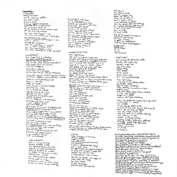 Tracklist: A1. Crushed Bones, A2. Yo Yo Bye Bye, A3. Rubber Traits, A4. The Hoofs, A5. Fall Saddles, A6. Gemini (Birthday Song), B1. Waterfalls, B2. Sanddollars, B3. Speech Bubbles, B4. Whispers Into The Other, B5. Act Five, B6. Light Leaves