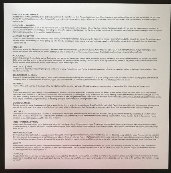 Tracklist: A1. Practice Makes Perfect, A2. French Film Blurred, A3. Another The Letter, A4. Men 2nd, A5. Marooned, A6. Sand In My Joints, A7. Being Sucked In Again, A8. Heartbeat, B1. Mercy, B2. Outdoor Miner, B3. I Am The Fly, B4. I Feel Mysterious Today, B5. From The Nursery, B6. Used To, B7. Too Late