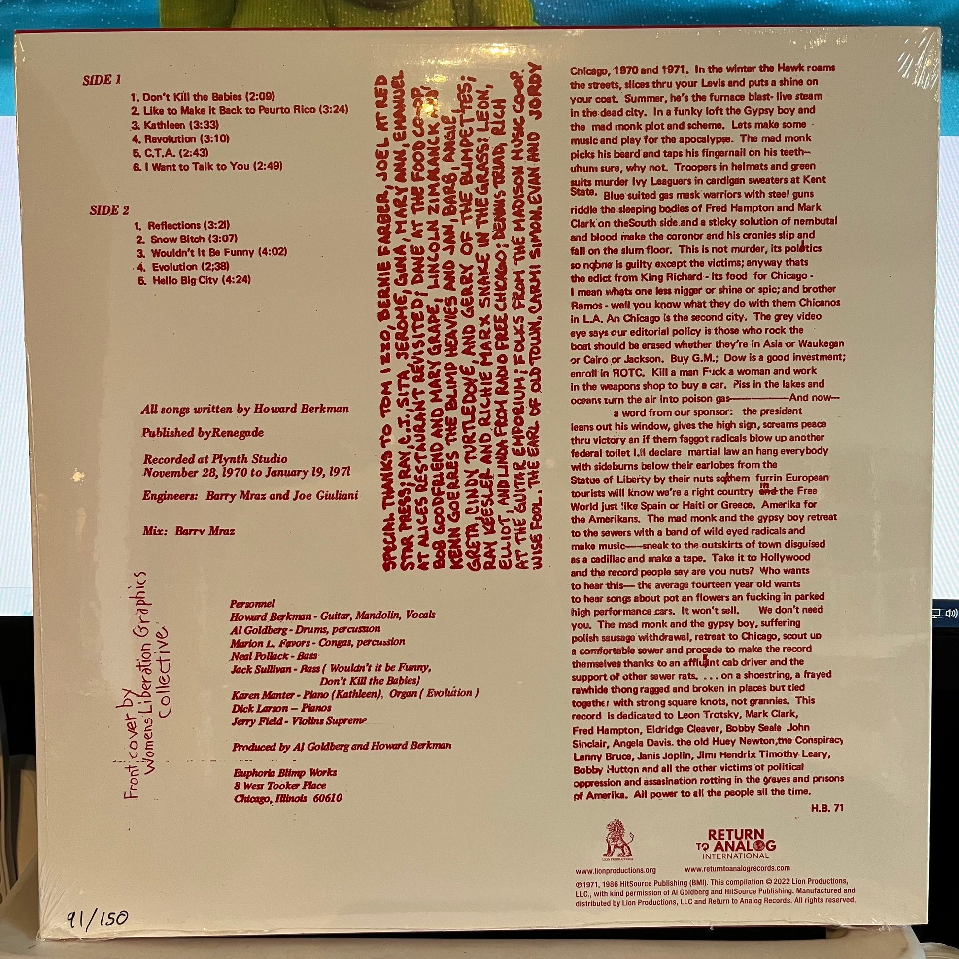 Tracklist: A1. Reflections, A2. Snow Bitch, A3. Wouldn't It Be Funny, A4. Evolution, A5. Hello Big City, B1. Don't Kill The Babies, B2. I Want To Make It, B3. Kathleen, B4. Revolution, B5. C.T.A., B6. I Want To Talk To You