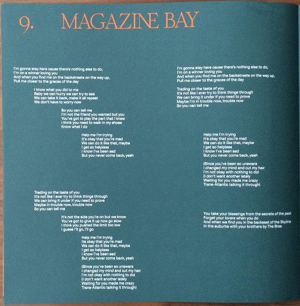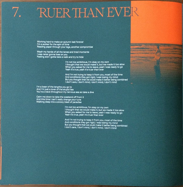 Tracklist: A1. Lonely After, A2. Right Track / Wrong Man, A3. Southwark, A4. Sage, A5. Mirror To The Fire, B6. Cool For A Second, B7. Truer Than Ever, B8. My Palms Are Your Reference To Hold To Your Heart, B9. Magazine Bay, B10. Lie Like You Want Me Back, C. Truer Than Ever (AP Version), D. Mirror To The Fire (HGP Version)